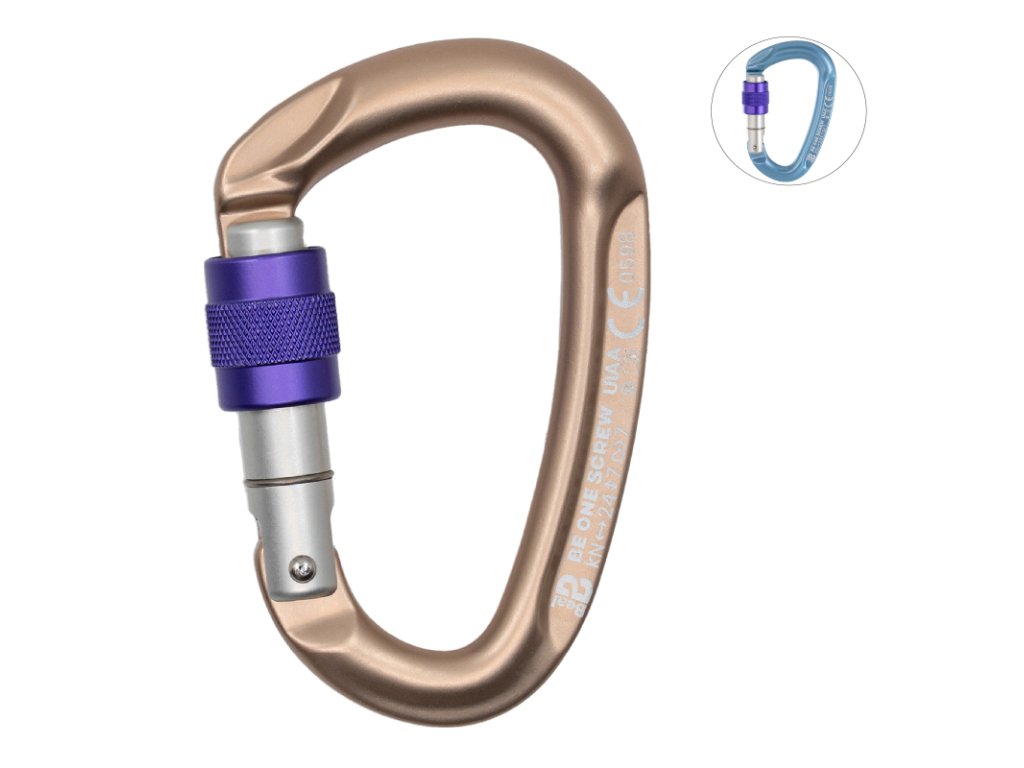 Be One Screw je kompaktní symetrická keylocková karabina se šroubovací pojistkou zámku pro bezpečné zajištění. Karabina je navržena pro jištění s jednoduchým lanem. Průměr hřbetu 12 mm zajišťuje dokonalý skluz lana, který zároveň šetří lano i samotnou karabinu.