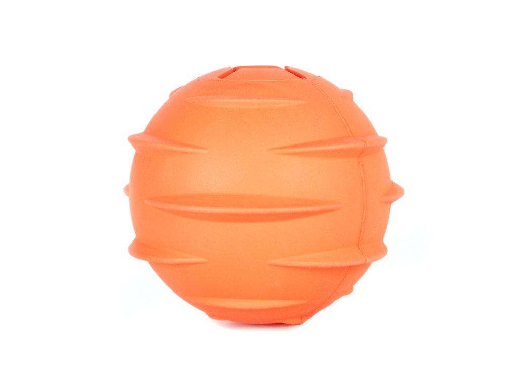 Míček je vyroben z odolných a netoxických materiálů, takže vydrží i intenzivní kousání. Podporuje zdravý pohyb a aktivní hru, ať už si váš pes míček aportuje, kouše ho nebo se snaží dostat k ukrytým dobrotám.