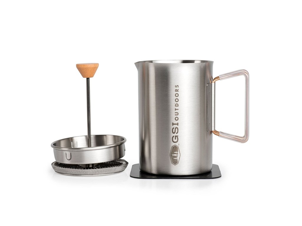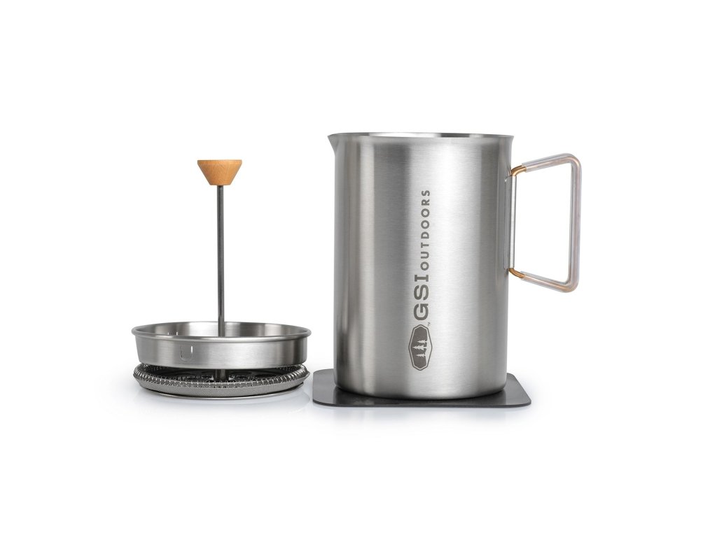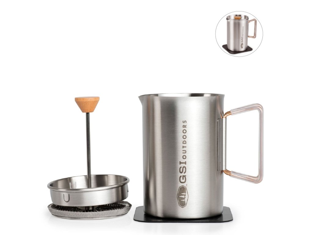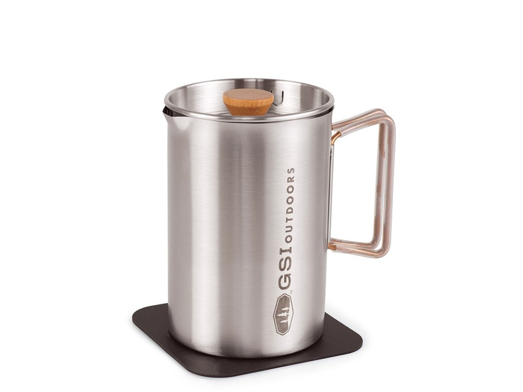 JavaPress od světoznámého amerického výrobce GSI Outdoors přichází s nerezovou variantou jednoduchého presovače, u kterého kromě čistého designu oceníte i praktické vychytávky a kvalitu, kterou je značka GSI Outdoors známá. Tělo je vyrobené z kvalitní nerezové oceli, takže bez problémů zvládne přímý kontakt s plamenem. Zároveň ale nabízí dostatečný komfort pro přípravu bohaté a plné kávy kdekoliv v terénu. Objem 610 ml nebo 1,18 l je ideální pro jednotlivce i menší skupinu. Praktické víko s více polohami umožňuje bezpečné a přesné nalévání. Sklopné rukojeti se silikonovou izolací dobře padnou do ruky, nepálí a při transportu je snadno složíš, takže nezaberou zbytečné místo v batohu. Součástí je nerezový French press filtr, víčko s dřevěným dekorem a také silikonová podložka, kterou lze využít i jako úchopku na horké nádobí.