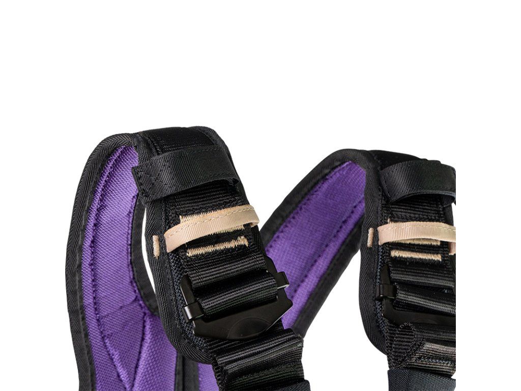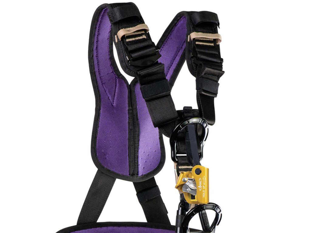 Pracovní polohovací postroj s integrovaným hrudním blokantem BEAL Hold Up, konstruovaný pro zachycení pádu při práci ve výškách. Široké polstrované ramenní popruhy ve tvaru „X“ zaručují velký komfort a rozložení tlaku při zatížení. Ramena jsou vedena odděleně, což zaručuje stabilní vzdálenost popruhů od krku. Hrudní část postroje nabízí dva přípojné kovové body pro hlavní a jistící lano. Ramenní popruhy, bederní pás i stehenní popruhy jsou podšité prodyšnou pěnou pro zlepšení pohodlí a větrání. Sedací část postroje nabízí dvě polohovací boční oka, 4 materiálová oka a rychlo utahovací / povolovací samo uzamykatelné přezky pro jednoduché nastavení. Stehenní popruhy jsou osazeny auto uzamykatelnými cvakacími přezkami. Kombinace bederních a stehenních spon zaručuje komfortní a rychlé nastavení i při oblékání sedáku s prostornější pracovní obuví. Součástí postroje je i 6 mini oček pro připojení pracovního vybavení z rodiny Beal WORKSTATION (Genius II, Tool Bucket II, Super Leash,...).