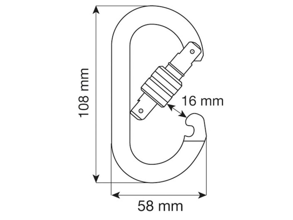 - Součástí je připojovací ocelová karabina se šroubovací pojistkou C.A.M.P. Steel Oval Standard Lock