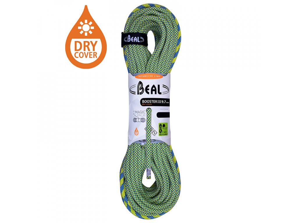 Kompaktné mäkké a veľmi ľahké lano s priemerom 9,7 mm s impregnáciou opletu (Dry Cover) má certifikáciu iba ako jednoduché lano. Booster je priekopníkom prvých tenších lán a ponúka vynikajúcu pevnosť v kombinácii s perfektným handlingom. Vďaka impregnácii a technológii Unicore® (spojenie jarda a opletu) je lano vhodné pre všetky druhy skalného lezenia. BEAL Booster sa okrem klasického prevedenia lana s čiernym markerom pre označenie stredu ponúka aj s úpravou opletu Safe Control, kde je každá polovica lana pletená iným vzorom opletu. Na zimné lezenie odporúčame plnú impregnáciu lana Beal Booster Unicore 9,7 mm Golden Dry.