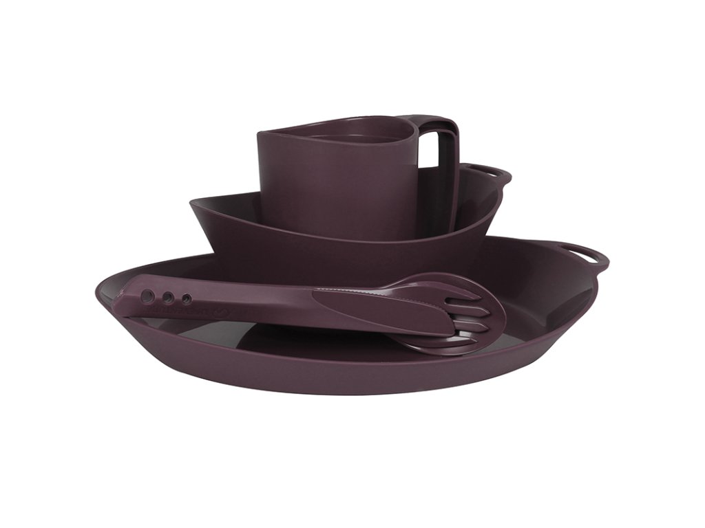 Sada taniera, misky, hrnčeka a príboru z ľahučkého odolného plastu. Súprava je k dostaniu v štyroch farebných variantoch. Materiál neobsahuje zdraviu škodlivý bisfenol (BPA free). Riad je možné umývať v umývačke riadu a je vhodný aj na použitie do mikrovlnnej rúry.