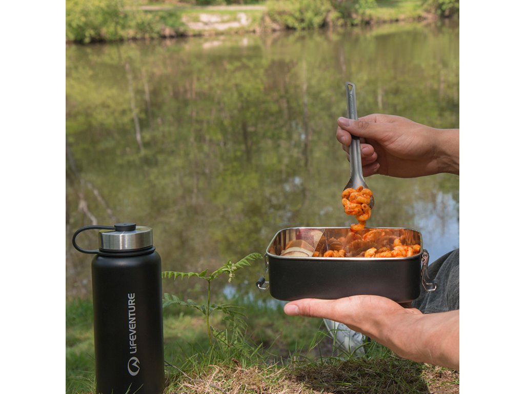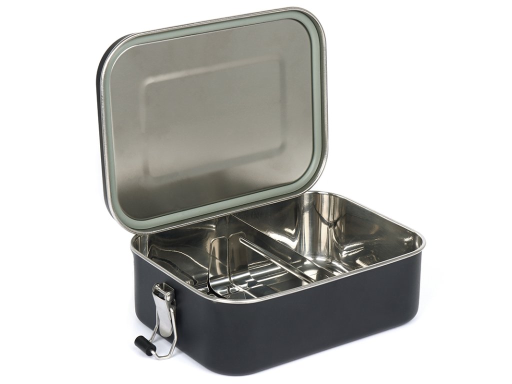 Obedový / desiatový box s vnútornou posuvnou prepážkou a objemom 1,2 litra je nepostrádateľný parťák pre vaše dobývanie prírody. Vodotesné veko je možné bezpečne pripevniť pomocou bočných aretačných labiek. Všetky komponenty sú vyrobené z kvalitného potravinárskeho nerezu.
