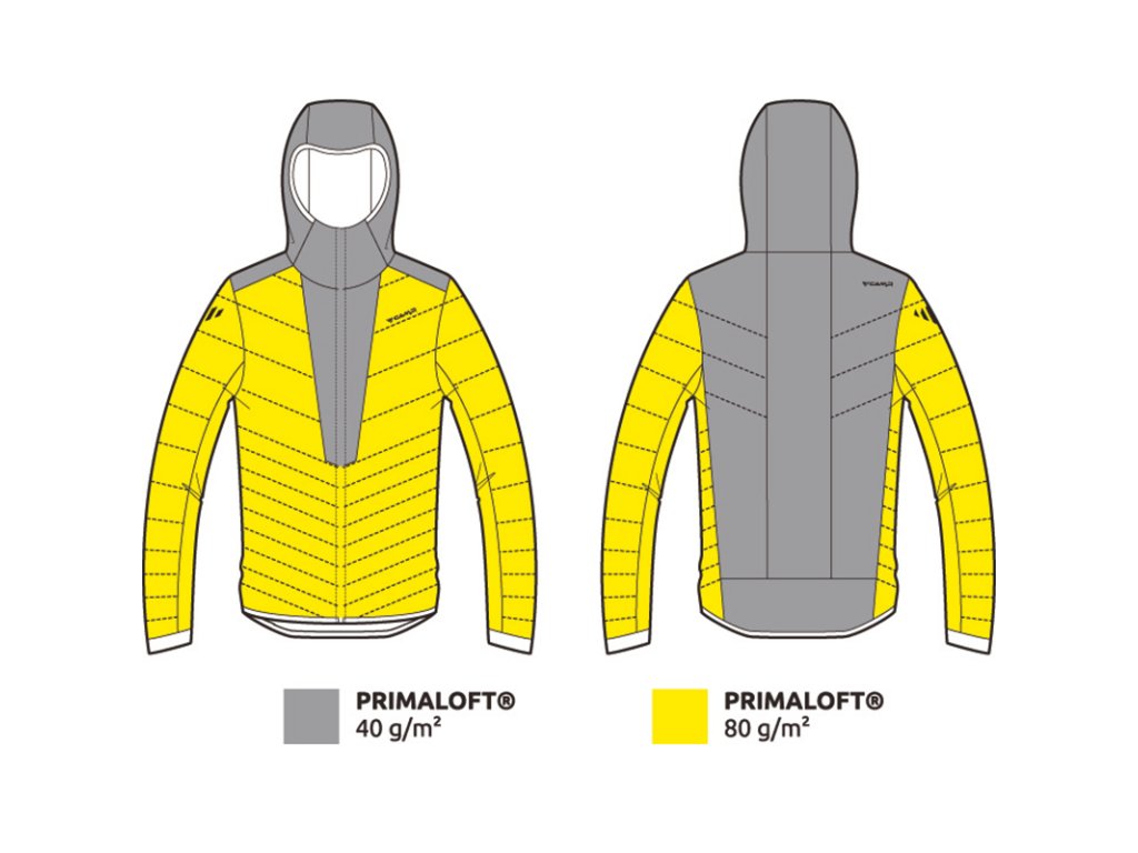 - Hyperľahká a zbaliteľná bunda so syntetickou izoláciou pre ľahké a rýchle aktivity