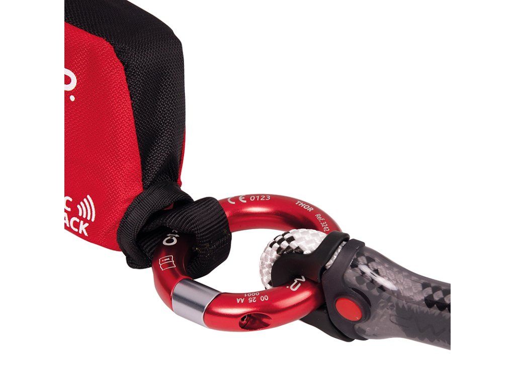 Thor je pracovní otevíratelný spojovací kroužek s pevností 25 kN, splňující normy EN a ANSI. Patří mezi nejpevnější otevíratelné kroužky na trhu. Spojovací čep s aretačním závitovým šroubem umožňuje snadnou manipulaci a vysokou úroveň bezpečnosti. Kruhový tvar zajišťuje plnou pevnost ve všech směrech zatížení. Tělo je vyrobeno z hliníkové slitiny, uzavírací čep se závitem je z nerezové oceli. Povrch po celém obvodu, včetně oblasti uzávěru, je hladký a přesně opracovaný pro plynulou manipulaci s lany, smyčkami a dalším vybavením. Zajišťovací čep o šíři 14 mm umožňuje připojení široké škály konektorů či textilních lanyardů. Závitový aretační šroub je opatřen gumovým O-kroužkem, který brání uvolnění vlivem vibrací a dynamického zatížení. Součástí balení je imbusový klíč 2,5 mm.